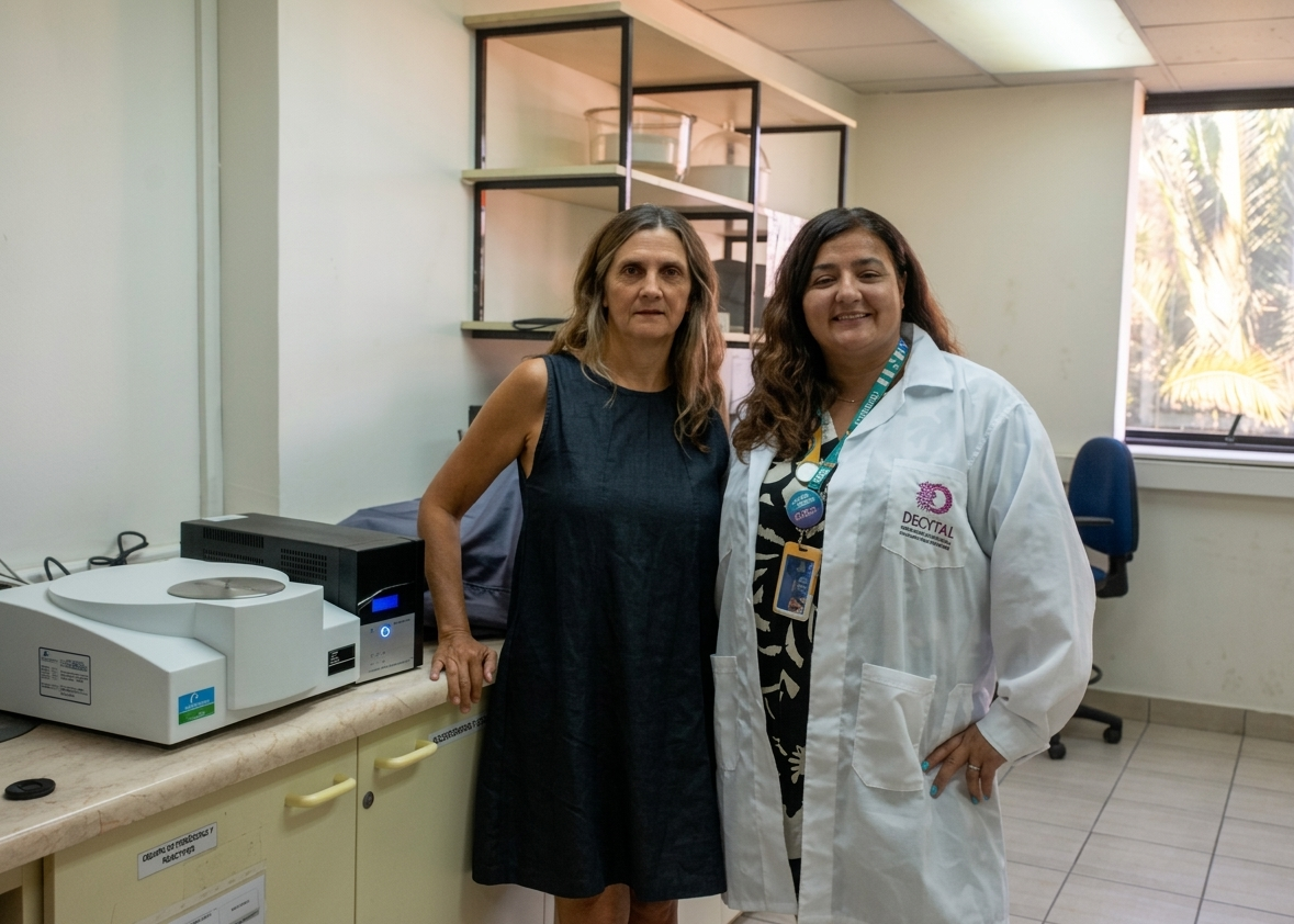 En el marco de esta colaboración, la Dra. Mazzobre también dictará un curso especializado sobre Calorimetría Diferencial de Barrido, utilizando equipamiento adquirido a través del mismo proyecto FONDECYT. Según explicó la investigadora, esta técnica permite analizar cómo reaccionan distintos compuestos frente a tratamientos térmicos y evaluar cómo estos afectan sus propiedades y estructuras, lo que resulta de gran relevancia para comprender el comportamiento de las moléculas presentes en los alimentos.
