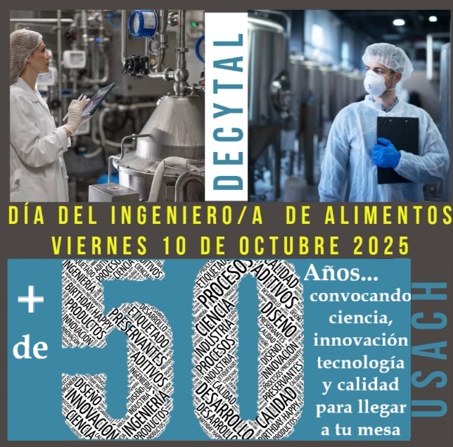 En el marco de la conmemoración de más de 50 años de historia de la Ingeniería de Alimentos en Chile, Decytal envía un afectuoso saludo a su comunidad estudiantil, egresados/as, así como a todos los profesionales de esta importante disciplina a lo largo del país.